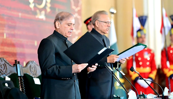 ملک کے 24ویں وزیراعظم شہباز شریف نے اپنے عہدے کا حلف اٹھالیا، صدر مملکت ڈاکٹر عارف علوی نے ان سے ایوان صدر میں عہدے کا حلف لیا۔