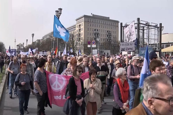 برلن (نیوزڈیسک)3500 جرمن شہریوں نے دارالحکومت برلن میں ایک مظاہرہ کیا، جس میں نیٹو کی جانب سے ہتھیاروں کے اخراجات میں اضافے سے علاقائی امن کو متاثر کرنے کی مذمت کی گئی ،اور علاقائی تنازعات کے سفارت کاری کے ذریعے پرامن حل کرنے پر زور دیا گیا۔