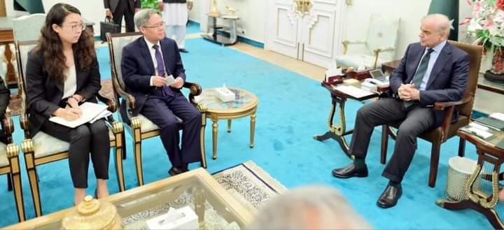 وزیراعظم محمد شہباز شریف نے پاک چین سٹریٹجک تعلقات میں مسلسل بہتری اور سی پیک کی اپ گریڈیشن کے لئے مل کر کام کرنے کے چینی قیادت کے وژن کو سراہتے ہوئے کہا ہے کہ پاکستان چین کے ساتھ انفارمیشن ٹیکنالوجی، مصنوعی ذہانت، جدید زراعت و دیگر شعبوں میں اشتراک کے فروغ کا خواہاں ہے۔ وزیراعظم آفس کے میڈیا ونگ سے جاری کردہ بیان کے مطابق وزیراعظم محمد شہباز شریف سے پاکستان میں تعینات چینی سفیر جیانگ زیڈانگ نے ملاقات کی۔ وزیراعظم نے چینی سفیر سے گفتگو کرتے ہوئے کہا کہ پاک چین دوستی وقت کی ہر آزمائش پر پورا اتری ہے، چین نے ہر مشکل وقت میں پاکستان کا غیر مشروط ساتھ دیا ہے۔ انہوں نے کہا کہ پاک چین سٹریٹجک تعلقات میں مسلسل بہتری اور چین پاکستان اقتصادی راہداری کی اپ گریڈیشن کے لئے مل کر کام کرنے کا چینی قیادت کا وژن لائق تحسین ہے، پاک چین دوستی دونوں ممالک کے ساتھ ساتھ خطے اور عالمی امن اور ترقی کے لیے ناگزیر ہے۔ وزیراعظم نے کہا کہ پاکستان چین کے ساتھ انفارمیشن ٹیکنالوجی، مصنوعی ذہانت، جدید زراعت و دیگر شعبوں میں اشتراک کے فروغ کا خواہاں ہے۔ ملاقات میں نائب وزیراعظم و وزیر خارجہ اسحاق ڈار ، وزیراعظم کے معاون خصوصی طارق فاطمی اور متعلقہ افسران نے شرکت کی۔