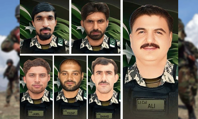آئی ایس پی آر کے مطابق 43 سالہ شہید لیفٹیننٹ کرنل کا تعلق فیصل آباد سے تھا جب کہ دیگر پانچ جوانوں کا تعلق خیبر، لکی مروت، ٹانک، اورکزئی اور سوات سے تھا۔