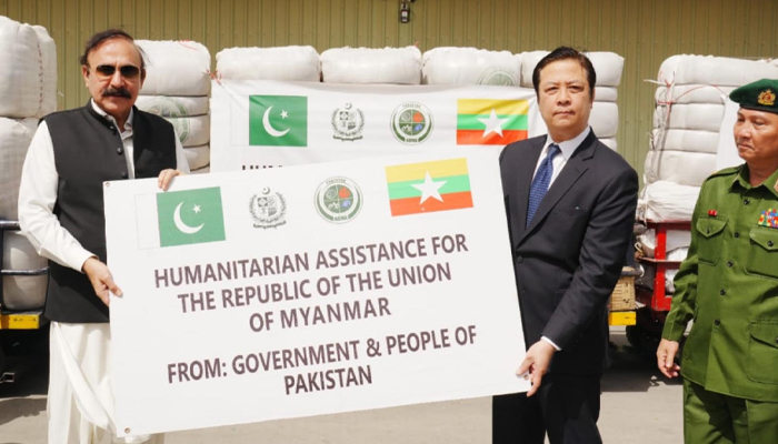 وفاقی وزیر ڈاکٹر طارق فضل چوہدری نے کہا کہ وزیرِاعظم کی ہدایت پر مجموعی طور پر 70 ٹن امدادی سامان میانمار بھیجا جا رہا ہے۔ انہوں نے کہا کہ پاکستان اس مشکل وقت میں میانمار کے عوام کے ساتھ کھڑا ہے۔ وزیرِاعظم شہباز شریف کی جانب سے میانمار کے عوام کے لیے ہمدردی کا خصوصی پیغام بھی دیا گیا۔