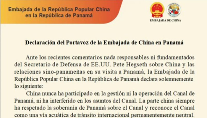 بیجنگ : امریکی وزیر دفاع پیٹ ہیگزتھ نے پاناما کے دورے کے دوران چین اور چین پاناما تعلقات کے بارے میں غیر ذمہ دارانہ بیان دیا۔ اس حوالے سے پاناما میں چینی سفارت خانے کے ترجمان نے ایک سنجیدہ بیان جاری کیا ہے۔بدھ کے روزبیان میں کہا گیا ہے کہ چین نے کبھی بھی پاناما کینال کے انتظام اور آپریشن میں حصہ نہیں لیا اور نہ ہی کبھی کینال کے معاملات میں مداخلت کی ہے۔تاریخی طور پر کینال کو صرف ایک ہی بار کاٹا گیا، اور وہ امریکی جارحیت کی وجہ سے تھا۔اعلامیے کے مطابق چین اور پاناما نے نومبر 2017 میں بیلٹ اینڈ روڈ انیشٹو پر مفاہمت کی یادداشت پر دستخط کیے تھے اور دونوں ممالک کے درمیان تعاون کے کامیاب نتائج برآمد ہوئے ہیں جس سے پاناما اور اس کے عوام کو ٹھوس فوائد حاصل ہوئے ہیں۔ امریکہ اپنے جغرافیائی سیاسی مقاصد کے تحت چین پاناما تعاون کو کمزور کرنے کی کوشش کر رہا ہے جس سے امریکہ کی تسلط پسندانہ پالیسی بے نقاب ہو رہی ہے ۔بیان میں اس بات پر زور دیا گیا کہ امریکہ اور پاناما کے تعلقات صرف دو طرفہ نہیں ہونے چاہئیں۔ چین کے ساتھ تعلقات کی ترقی، ایک خودمختار ملک کی حیثیت سے پاناما اور پاناما کے عوام کا انتخاب ہے اور امریکہ کو اس میں مداخلت کا کوئی حق نہیں ۔ چین نے امریکہ پر زور دیا ہے کہ وہ پاناما سمیت لاطینی امریکہ اور ترقی پذیر کیریبین ممالک پر اپنی بالادستی اور استحصال پر غور کرے اور چین کو بدنام کرنا بند کرے۔