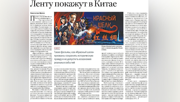 چین اور روس کی مشترکہ پروڈکشن فلم "ریڈ سلک” کی تشہیر ماسکو میں ہوگی