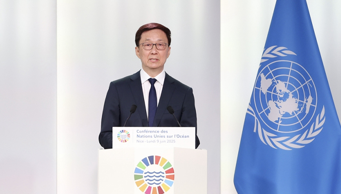 پیرس : چین کے نائب صدر ہان جنگ نے فرانس میں منعقدہ اقوام متحدہ کی تیسری اوشین کانفرنس میں شرکت کی اور عام مباحثے سے خطاب کیا۔ منگل کے روز ہان جنگ نے کہا کہ سمندر سمیت مختلف شعبوں میں پائیدار ترقی کے اہداف کو پورا کرنے کے لیے مختلف فریقوں کو مشترکہ طور پر اس ذمہ داری کو سنبھالنا ہے۔چینی صدر شی جن پھنگ نے کہا کہ یہ نیلا سیارہ جہاں ہم بنی نوع انسان رہتے ہیں سمندر کے ذریعے مختلف جزیروں میں تقسیم نہیں ہے ، بلکہ سمندر کے ذریعے ایک ہم نصیب معاشرے میں جڑا ہوا ہے۔ہمیں اقوام متحدہ کی موجودہ اوشین کانفرنس کے موقع سے فائدہ اٹھا کر وسائل کی حفاظت اور پائیدار استعمال کو ہم آہنگ کرنا ہے، سمندر کی پائیدار ترقی کو آگے بڑھانا ہے اور بنی نوع انسان کے ہم نصیب معاشرے کی مشترکہ تعمیر کو فروغ دینا ہے۔سب سے پہلے،ایک پرامن اور محفوظ سمندر بنانے کی ضرورت ہے. دوسرا یہ کہ سب کے لئے خوشحالی کا سمندر مشترکہ طور پر تعمیر کیا جائے۔ تیسرا یہ کہ تہذیبوں کے انضمام کا سمندر تعمیر کیا جائے۔ چوتھا، ہمیں ایک صاف اور خوبصورت سمندر بنانے کی ضرورت ہے.کانفرنس میں شرکت کے دوران ہان جنگ نےفرانس کے صدر ایمانوئل میکرون اور اقوام متحدہ کے سیکرٹری جنرل انتونیو گوتریس سے الگ الگ ملاقات کی۔فرانس کے صدر ایمانوئل میکرون سے ملاقات کے موقع پر ہان جنگ نے کہا کہ چین اسٹریٹجک خود مختاری پر قائم رہنے میں فرانس کی حمایت کرتا ہے اور فرانس کے ساتھ مل کر دو طرفہ اسٹریٹجک مشاورت کرنا چاہتا ہے اور یورپی فریق کے ساتھ مل کر تعاون کو وسعت دینا چاہتا ہے۔