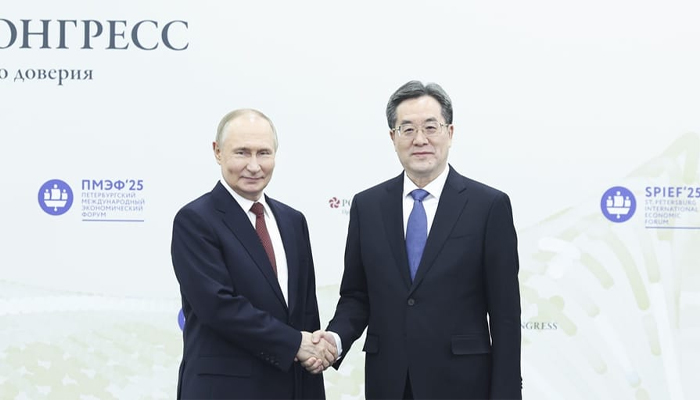 بیجنگ : چین کے نائب وزیر اعظم ڈنگ شوئے شیانگ نے سینٹ پیٹرزبرگ میں روسی صدر ولادیمیر پیوٹن سے ملاقات کی ہے۔ ہفتہ کے روز ڈنگ شوئے شیانگ نے نشاندہی کی کہ چین روس کے ساتھ سیاسی باہمی اعتماد کو مستحکم کرنے، تعلقات کو مضبوط بنانے، اقتصادی اور تجارتی سرمایہ کاری کو بڑھانے، توانائی کے شعبے میں عملی تعاون کو گہرا کرنے، متعلقہ منصوبوں کی تعمیر کو فروغ دینے اور دونوں ممالک کی ترقی اور بحالی کی حمایت کے لئے کام کرنے کا خواہاں ہے۔ ڈنگ شوئے شیانگ نے کہا کہ چین اور روس کو مضبوط جامع تزویراتی تعاون کے ساتھ بین الاقوامی اخلاقیات کو برقرار رکھنا چاہئے ، ڈبلیو ٹی او کی مرکزیت پر مبنی کثیر الجہتی تجارتی نظام کی حمایت کرنی چاہئے ، صنعتی و سپلائی چینز کے استحکام کو برقرار رکھنے کے لئے مل کر کام کرنا چاہئے ، شنگھائی تعاون تنظیم اور برکس سمیت کثیر الجہتی تعاون کو گہرا کرنا چاہئے ، اور مساوی اور منظم عالمی کثیر پولرائزیشن اور جامع اقتصادی گلوبلائزیشن کو فروغ دینے کے لئے زیادہ سے زیادہ حصہ ڈالنا چاہئے۔پیوٹن نے کہا کہ بیرونی مشکلات اور چیلنجز کا سامنا کرتے ہوئے روس اور چین کے تعلقات ہمہ جہت ترقی کی راہ پر ہیں اور ایک بے مثال سطح پر پہنچ گئے ہیں۔ انہوں نے کہا کہ وہ شنگھائی تعاون تنظیم کی تھیان جن سمٹ اور جاپانی جارحیت کے خلاف چینی عوام کی جنگ اور عالمی فاشسٹ مخالف جنگ کی فتح کی 80 ویں سالگرہ کی یادگارتقریبات میں شرکت کے منتظر ہیں۔