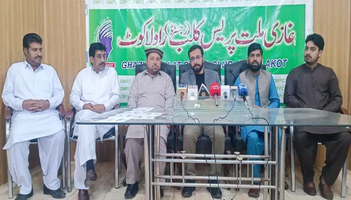 راولاکوٹ:حق دو تحریک آزاد کشمیر کے جنرل سکریٹری سردار قمر رشید , مرکزی چیف آرگنائزر سردار زاہد ، صدر حلقہ 3 پونچھ سردار اکرام منصف ، جنرل سکریٹری حلقہ 3 سردار ظہور ، سکریٹری سوشل میڈیا حلقہ 3 سردار سہیل اور دیگر نے غازی ملت پریس کلب راولاکوٹ میں ہنگامی پریس کانفرنس سے خطاب کرتے ہوئے کہا ہے کہ آج کی اس یہ پریس کانفرنس انتہائی اہم ہے جسمیں ہم عوامی حقوق کی حالیہ تحریک، مظاہروں اور اس کے مختلف پہلووں پر بات کریں گے اور اس کے ساتھ بھارت کی طرف سے ایک بار پھرپاکستان پر حملہ کے عزائم کا اظہار کیا جا رہا ہے ۔