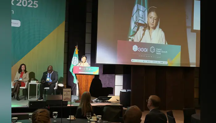 وزارت موسمیاتی تبدیلی و ماحولیاتی ہم آہنگی کی جانب سے جاری بیان کے مطابق ان خیالات کا اظہار انہوں نے جنوبی کوریا کےدارالحکومت سیول میں منعقدہ تین روزہ گلوبل گرین گروتھ انسٹیٹیوٹ کی 14ویں اسمبلی اور اٹھارویں کونسل کے افتتاحی اجلاس سے خطاب کرتے ہوئے کیا۔ وزیر مملکت موسمیاتی تبدیلی نے پاکستان کے کم کاربن ترقیاتی راستوں اور موسمیاتی لچکدار پالیسیوں کے نفاذ میں قائدانہ کردار کو اجاگر کیا۔انہوں نے کہا کہ پاکستان موسمیاتی تبدیلی سے نمٹنے، قابلِ تجدید توانائی کے فروغ اور سبز ترقی کے ایجنڈے پر پُرعزم انداز میں عمل پیرا ہے۔ یہ اجلاس 29 تا 31 اکتوبر تک جاری رہا۔