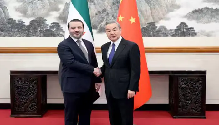 بیجنگ : چین کے وزیر خارجہ وانگ ای نے چین کے دورے پر آئے ہوئے شام کی عبوری حکومت کے وزیر خارجہ اسد حسن الشیبانی کے ساتھ بیجنگ میں ملاقات کی۔پیر کے روز وانگ ای نے کہا کہ چین اور شام دونوں ترقی پذیر ممالک ہیں اور دونوں کے مابین مشترکہ مفادات موجود ہیں۔ چین نے ہمیشہ اس اصول کو برقرار رکھا ہے کہ تمام ممالک، بڑے ہوں یا چھوٹے ، برابر ہیں ۔