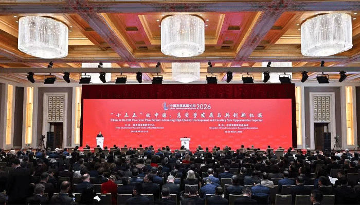 بیجنگ : چائنا ڈیولپمنٹ فورم 2026 کا سالانہ اجلاس 22 تاریخ کی صبح بیجنگ میں شروع ہوا۔ بین الاقوامی تنظیموں، انٹرنیشنل 500 ملٹی نیشنل کمپنیز اور عالمی کاروباری حلقوں کے 100 سے زائد غیر ملکی نمائندوں نے افتتاحی تقریب میں شرکت کی ۔ فورم کے دوران، نئے قسم کے صارفین، مصنوعی ذہانت اور خدمات کے شعبے میں کھلے پن سمیت دیگر اہم موضوعات پر تفصیلی تبادلہ خیال اور مطالعہ کیا جائے گا۔ چائنا ڈیولپمنٹ فورم سنہ 2000 میں قائم ہوا ، اور اس کے بعد سے یہ چین اور دنیا کے درمیان مکالمہ اور تعاون کو فروغ دینے والا ایک اہم پل بن چکا ہے۔ رواں سال چین کے”پندرہویں پانچ سالہ منصوبے” کے آغاز کا سال ہے، اور چین کی گہری اصلاحات اور اعلیٰ سطحی کھلا پن عالمی معیشت کو نئے مواقع فراہم کرے گا۔ اس طرح، اس سال فورم کے مختلف موضوعات اور مباحثے "پندرہویں پانچ سالہ منصوبے کے تحت چین اور اعلیٰ معیار کی ترقی اور مشترکہ نئے مواقع” کے موضوع پر ہوں گے ۔ اس دو روزہ فورم میں افتتاحی تقریب کے علاوہ مختلف موضوعات پر خصوصی سیمینارز اور بند دروازوں کے اجلاس بھی شامل ہیں۔