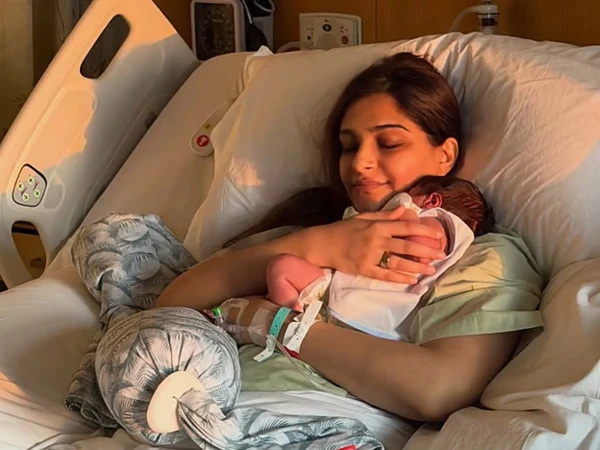 ایک تصویر نے سب کی توجہ اپنی طرف کھینچ لی، جس میں سونم اسپتال کے بستر پر لیٹی ہیں، آنکھیں بند، چہرے پر ہلکی سی مسکراہٹ، اور اپنے نومولود بیٹے کو سینے سے لگائے ہوئے ہیں جب کہ بچہ سفید کپڑے میں لپٹا ہوا ہے، مشکل سے نظر آ رہا ہے، مگر تصویر کا مرکز وہی ہے۔