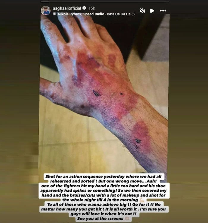 معروف پاکستانی اداکار آغا علی ایک ڈرامے کی شوٹنگ کے دوران زخمی ہو گئے، تاہم انہوں نے پیشہ ورانہ عزم کا مظاہرہ کرتے ہوئے نہ صرف کام جاری رکھا بلکہ اس تجربے کو اپنی محنت کا حصہ قرار دیا۔