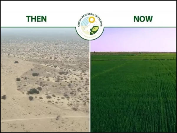 گرین پاکستان انیشیٹو کے تحت جدید زرعی اصلاحات کی بدولت بنجر زمینوں کی بحالی اور زرعی پیداوار میں اضافے کا عمل تیزی سے جاری ہے۔